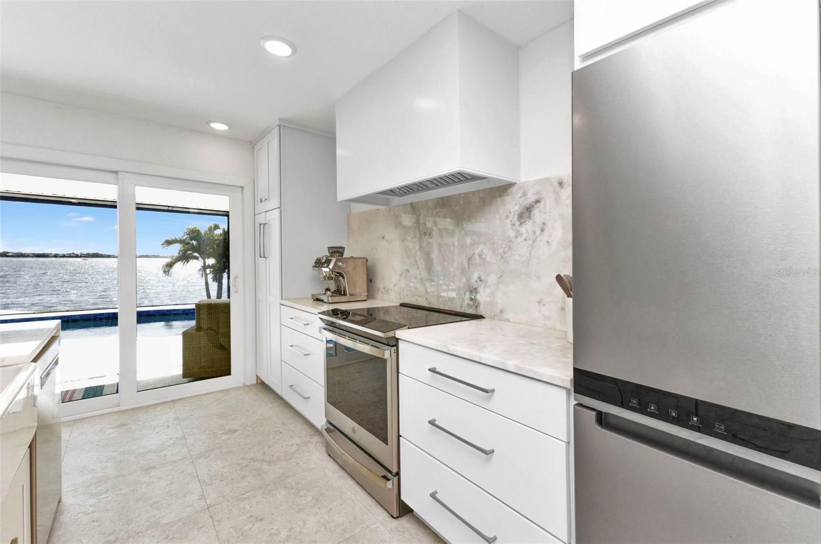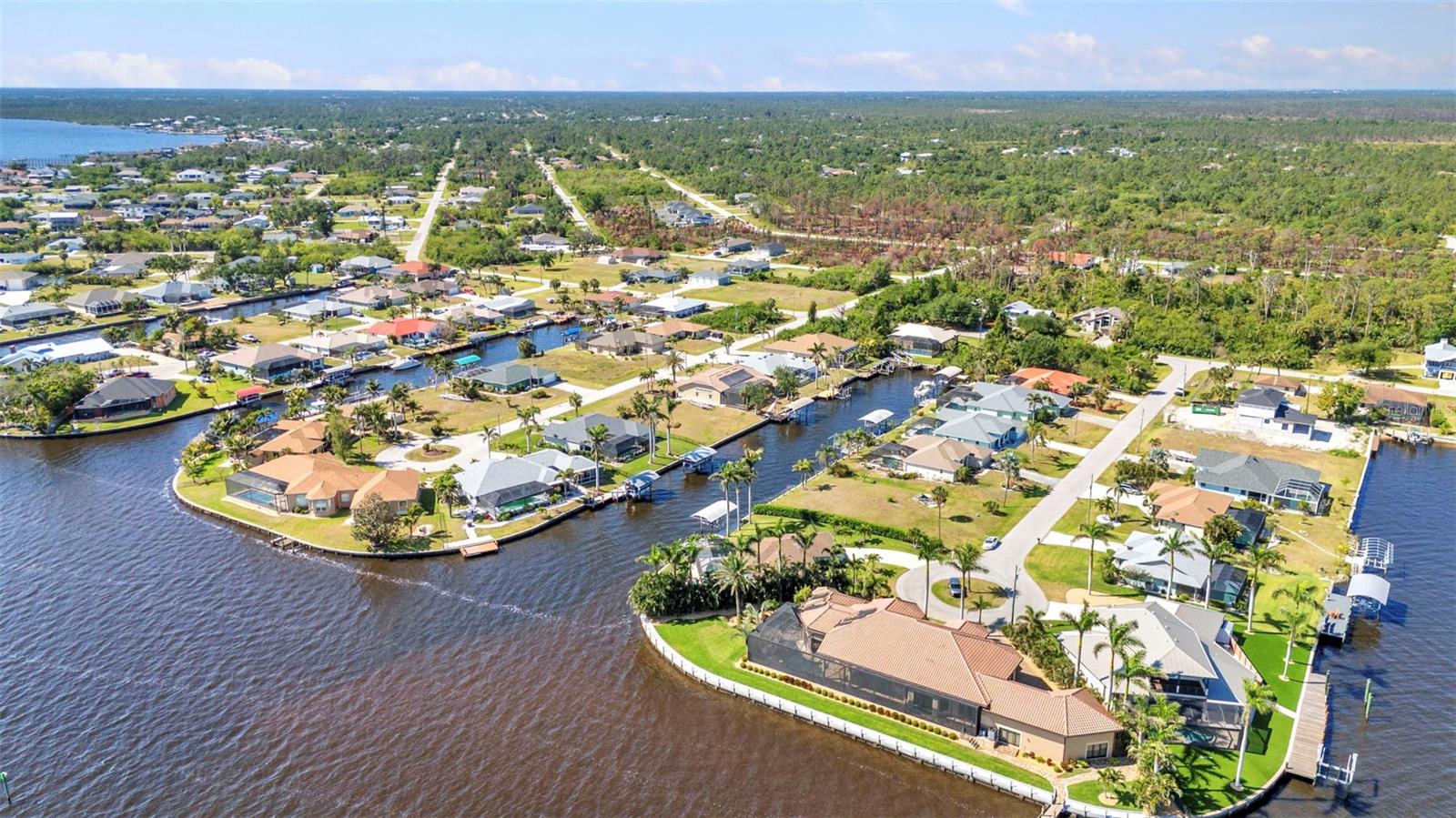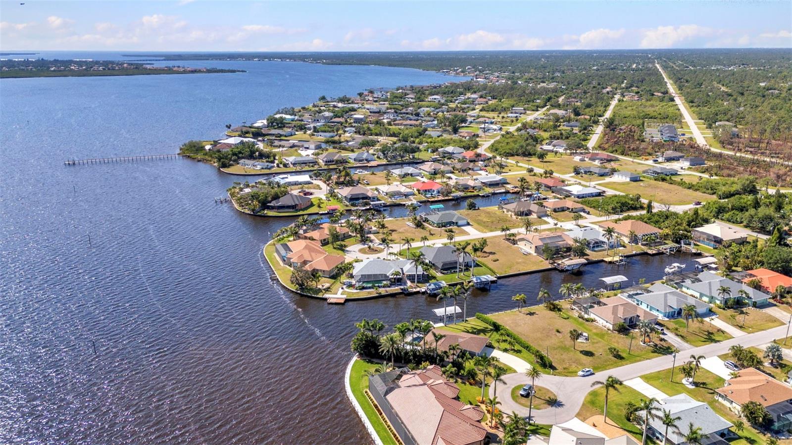 Jaw-Dropping Myakka River Views from This Oversized Tip Lot in Gulf Cove! Perfectly positioned on an oversized tip lot with 160 feet of concrete seawall, this remodeled 2-bedroom, 2-bath waterfront home with 12,000 lb. boat lift offers some of the most spectacular, unobstructed views of the Myakka River you'll find in Gulf Cove. Whether it's sunrise reflections or glowing sunsets, the backdrop is pure magic. Located at the end of a quiet cul-de-sac, this bright and beautiful home was renovated just two years ago with timeless finishes and thoughtful upgrades throughout. The open split floor plan features elegant 28" porcelain tile flooring, a soft white palette, and a seamless flow between indoor and outdoor living spaces. The kitchen is a showpiece, designed with both beauty and functionality in mind. You'll find a waterfall island with storage, sleek stone countertops, soft-close solid wood cabinetry with pull-out drawers, top-of-the-line stainless appliances, a farmhouse sink and a pantry with additional pull-outs for easy organization. Just off the dining area, a built-in beverage station with a wine fridge and matching cabinetry adds a perfect touch for entertaining. The spacious ensuite primary offers sliding doors to the lanai, a walk-in closet, dual sinks, and a large tiled walk-in shower. On the opposite side of the home, the guest bedroom also features sliding doors to the lanai, along with a nearby full bath, ideal for visitors seeking privacy and comfort. Two sets of sliding doors from the main living space lead to the expansive paver lanai, where a heated pool, a recently resurfaced deck, and a panoramic screen create a resort-style space to relax and take in those incredible views. Whether you're savoring your morning coffee in the gentle breeze or enjoying a glass of wine as the sky turns gold at sunset, the lanai becomes your front-row seat to the beauty and tranquility of waterfront living. Just beyond the screen enclosure, a paver walkway and Trex deck guide you to your covered 12,000 lb. boat lift, ready for spontaneous boat days and sunset cruises. Lush tropical landscaping wraps the home in beauty and privacy, making it feel like a true retreat. Additional highlights include custom blinds & shutters, impact-resistant windows and doors, an oversized two-car garage with a laundry area, utility sink and a retractable screen to let in light and fresh air. This home remained dry during recent storms and is ready for new memories to be made. Furnishings are negotiable outside of the contract, making your move-in even easier. Conveniently located near shopping, dining, entertainment, and some of Southwest Florida's most beautiful beaches, this home is perfect for anyone who seeks luxury, sophistication and breathtaking views. Don't miss out on the opportunity to own this exquisite piece of paradise!